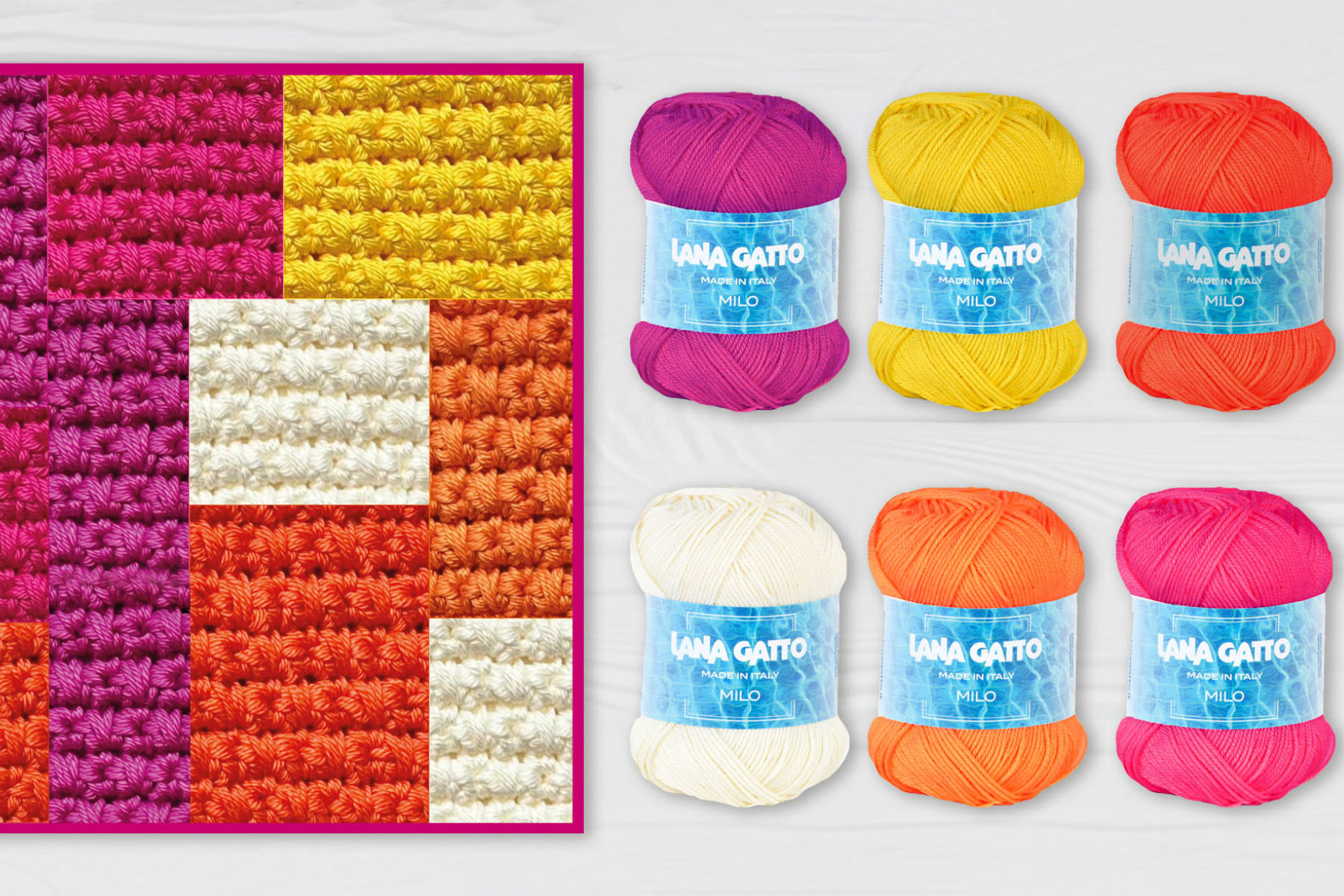 A special gift for the month in which we celebrate International Women’s Day. In the coming weeks, in fact, we will publish two original layouts to create a super colorful crochet rug. We are working it with a classic 100% cotton, Milo yarn, perfect for its wide range of bright and vivid hues.
