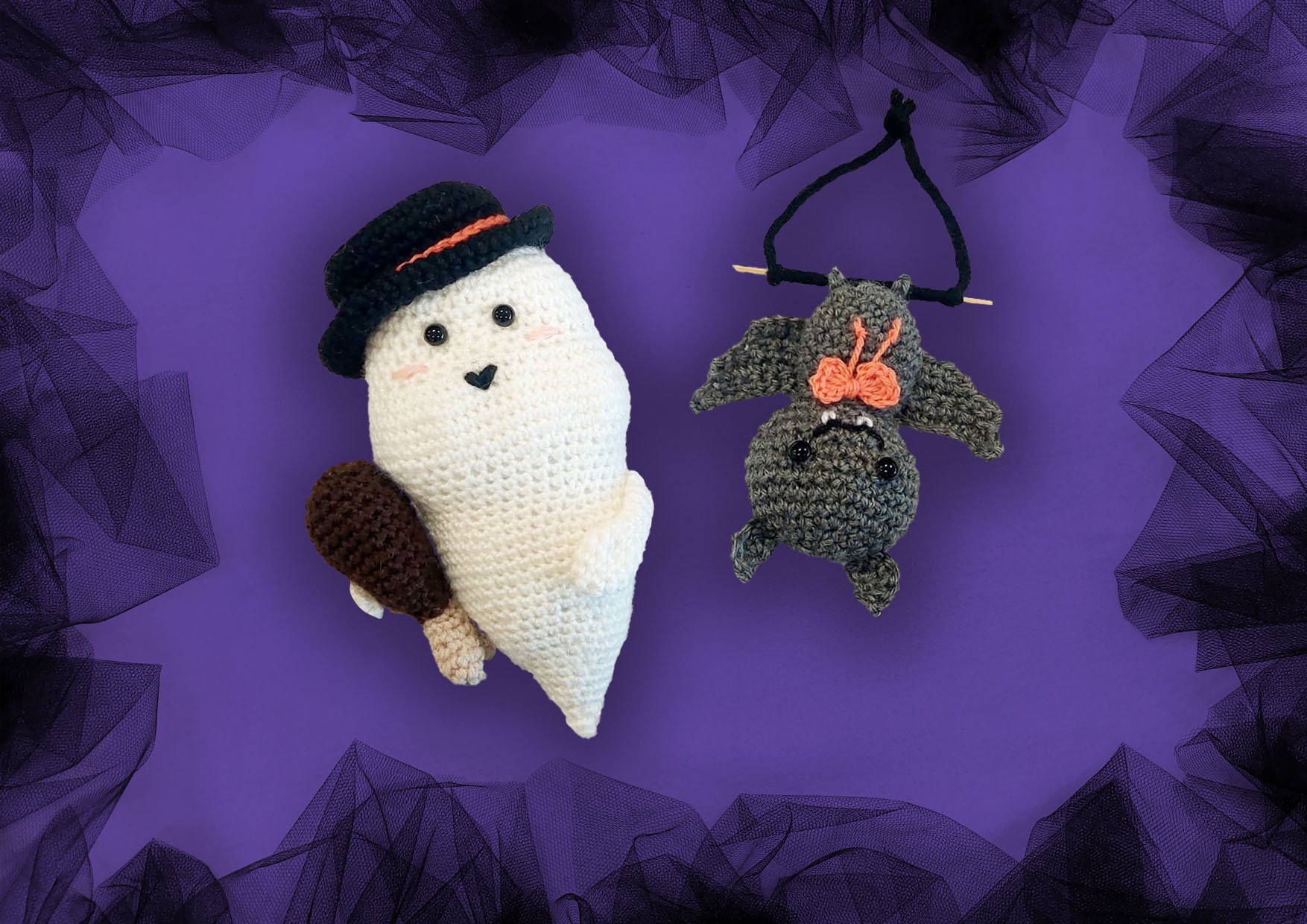 Halloween crochet decorations: little ghost and bat!